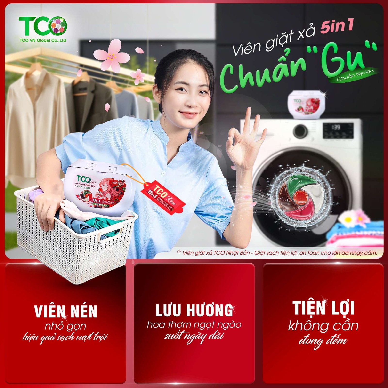 “Từ ngày dùng viên giặt TCO, mình không còn phải lo lắng về việc đong nước giặt hay nước xả. Mùi thơm dễ chịu, giặt xong phơi trong nhà vẫn thơm mát!”